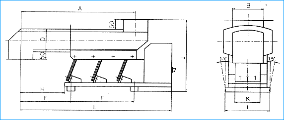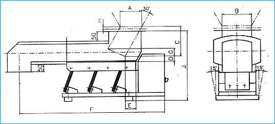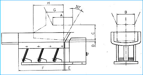 本產(chǎn)品設(shè)計(jì)時未考慮物料倉壓影響,為保證給料機(jī)的正常工作,應(yīng)盡量減少料倉壓力的影響,建議設(shè)備使用時配置相應(yīng)的溜嘴,溜嘴的形式及配置尺寸見下圖: